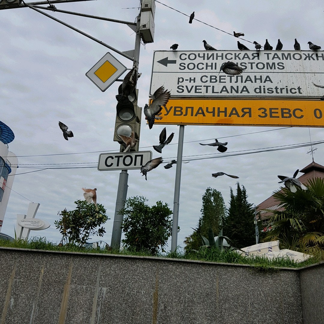 На перекрестке на столбах сидят гопо-голуби и срут, будте аккуратны.