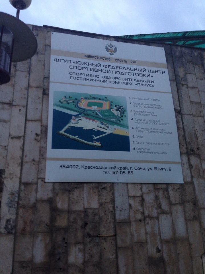 Бывает, что люди ищут эту спортивная школа как Гостиница "Парус" ФГУП ЮГ СПОРТ. Мы стараемся поддерживать всю информацию о «ЮГ СПОРТ Южный федеральный центр спортивной подготовки» в актуальном состоянии. Если вы обнаружили неточность или ошибку, пожалуйста, исправьте ее.